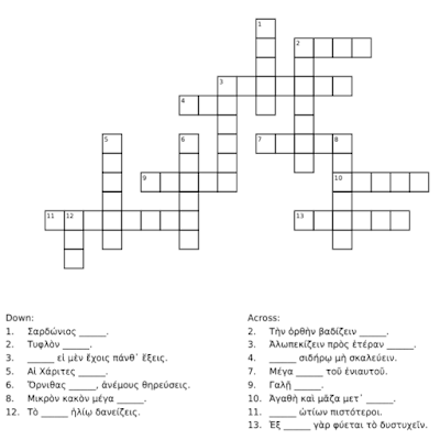 And here's the crossword puzzle based on a missing word from each proverb: printable Crossword PDF. I've pasted in screenshots below so you can see what the crossword looks like: